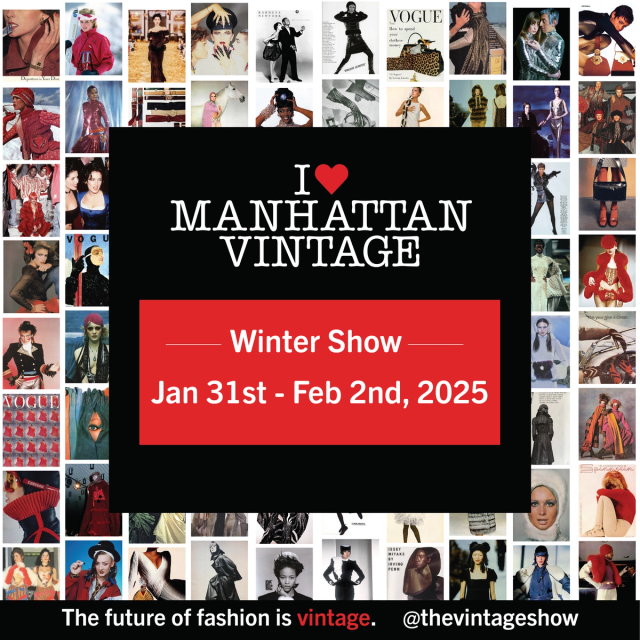 But any self-respecting fashion lover who knows her Cardin from her Cassini, will tell you that the future of fashion is vintage. Far from being a flash-in-the-pan fad, vintage fashion—which has amassed a fanbase that includes everyone from fashion nerds to amateur enthusiasts alike—is only gaining steam. For proof, look no further than the Manhattan Vintage Show, the multi-vendor showcase featuring a decade-spanning smorgasbord of fabulously-curated fashion apparel, jewelry, accessories and more, offered at a range of price points.