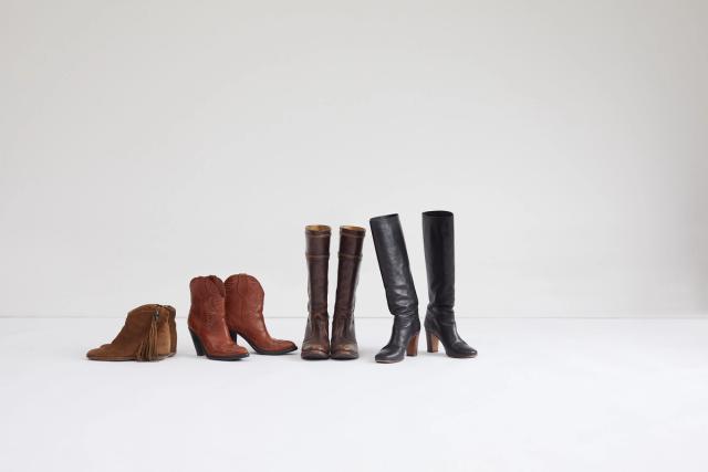 From left to right, frequently worn fringed ankle boots. Givenchy cowboy boots were purchased several seasons ago.