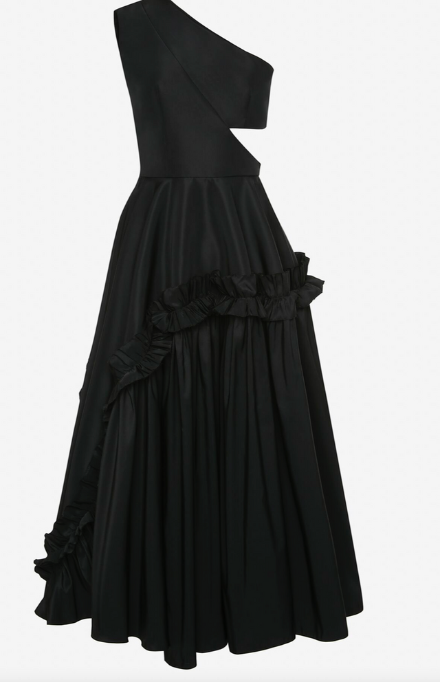 The first item on Darshana's list Alexander Mcqueen Asymmetric One-shoulder Dress. Available via MyTheresa