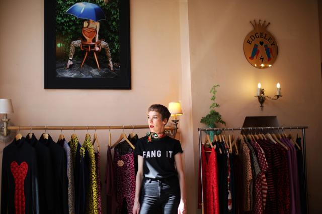 Fashion shows, however, have always felt like a strain. She finds the standard-issue runway format boring, and moreover, hates the awkwardness of standing around and making self-promoting small talk afterwards. When Edgelely does occasionally concede to the idea of a fashion show, the event is equal parts “show” and “fashion.” “The last one we did was a Bob Fosse-inspired show,” she says, which featured dancers, performance artists, and members from a local rock band. “It was quite fun,” she gushed.
