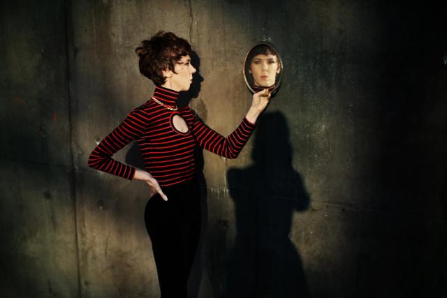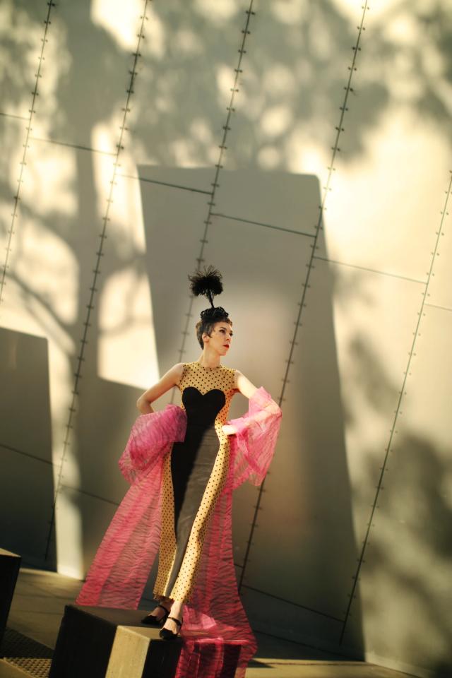Credits: All garments by Edgeley. In order of appearance- sequin and mesh catsuit worn with cape and turban. The Endura dress (metallic and black fabric) The classic Silhouette dress (velvet and polka dot mesh) Porthole turtleneck worn with black velvet leggings.