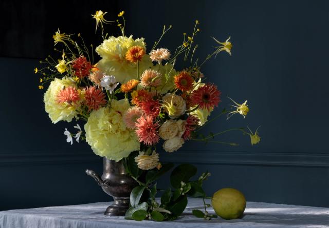 Caroline Bailly has had a professional presence in the floral industry for the last 15 years, however the ease with which she manipulates and employs the materials of her trade—whether thick bundles of vibrant stems from Manhattan’s flower market, freshly-cut globes of peonies from her own garden, or a tangle of blooms spontaneously picked from somewhere, anywhere—hints at a much deeper, more personal connection.