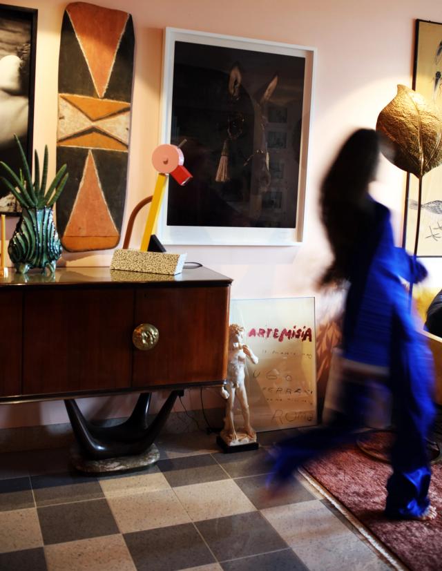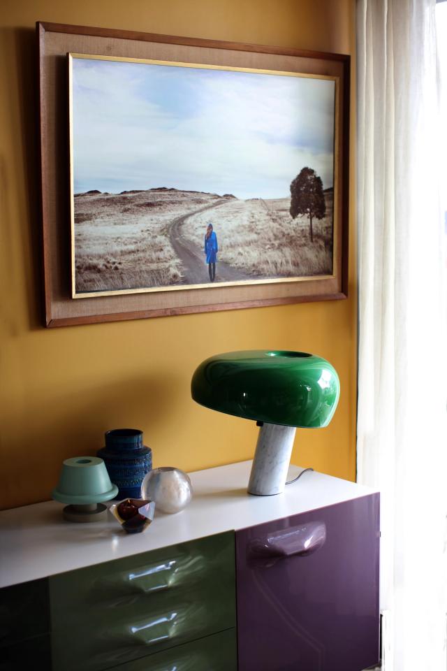 One of the paradoxes of decorating a small (ish) space is knowing how to play with scale, and when to dial it up— even when it seems counter-intuitive. Her heart was set on an Italian 1950s sideboard by Vittorio Dassi – a cabinetmaker for Gio Ponti before setting up his own business. It was massive and wouldn’t fit in the lift or in the stairwell and so after exploring, and rejecting, a number of other sideboard options the decision was made to cleave it in two, install and mend on-site. “Eddy and friend Frank knew just how important this was to me, and went above and beyond to make it happen,” she says.