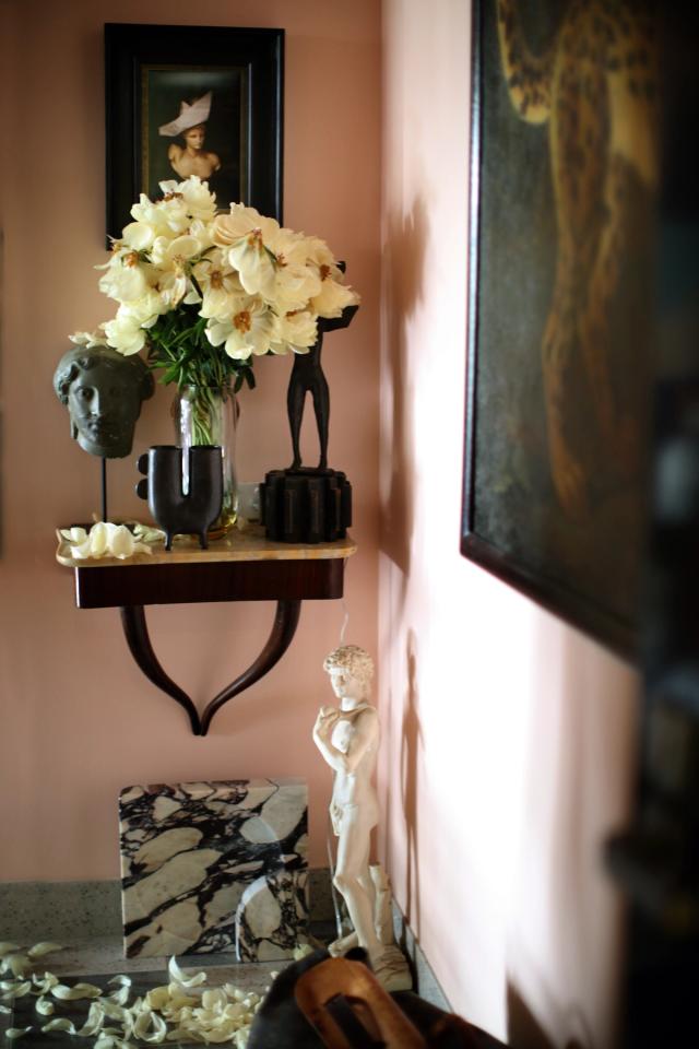 Eryca has always been an advocate of economy chic, and has a deeply-embedded egalitarian mindset that is conscious of being even-handed to billionaires and students alike who come into the store. “I have always said, ‘Look if you don't have money, you can do a lot with a tin of paint.’ And so this was my moment to really put my philosophy to the test,” she says. As a long-term proponent of the cocooning power of pink, here she nudges the tone to the peach end of the spectrum. Colour is defining of this space in particular and her oeuvre in general, with manipulation of light and tone, intensity and subtly playing out in her photographic work.