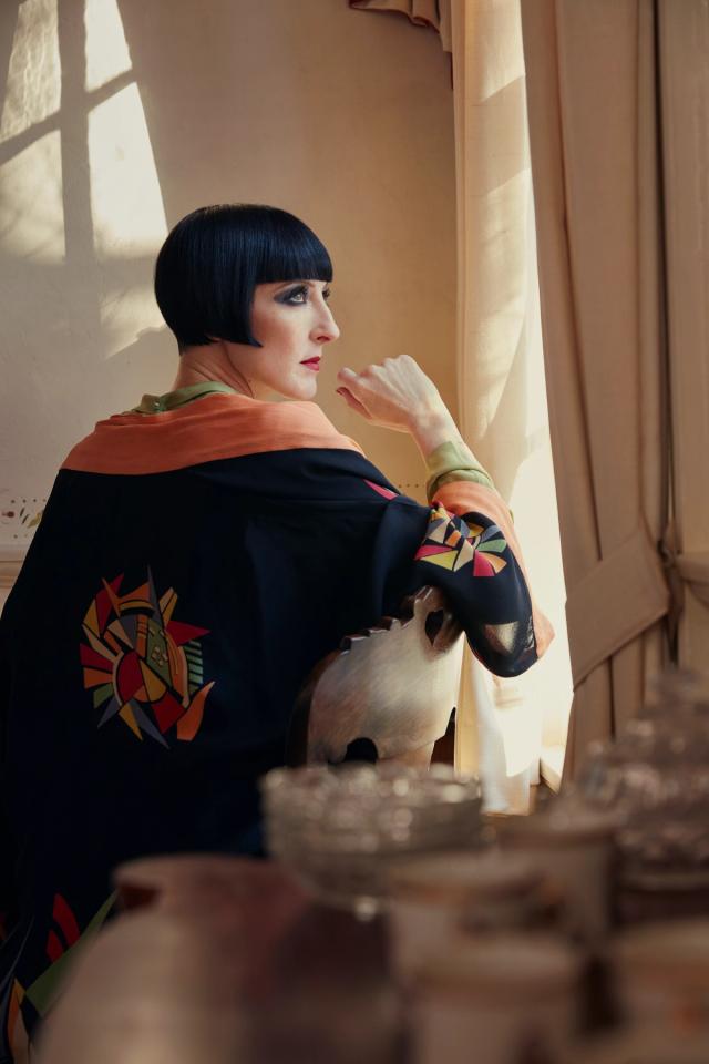 Silk dress with tabard from Sally Hoban and Vorticist jacket from Meloo Vintage.