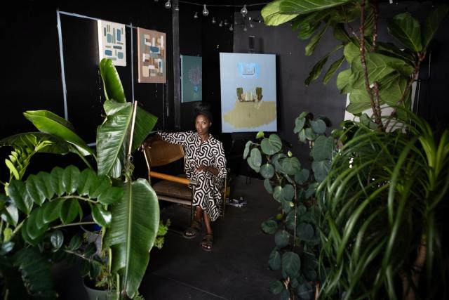 As with plants, Richards’ painting practice wasn’t born from formal training. “I had no involvement in art before the pandemic started. I remember a night when there was just so much unrest in the city. And I went into what was then the garage, and I was just like, ‘I need to do something. I have so much energy, so much of the city’s energy in me.’ We were in the middle of the pandemic, there’s a civil uprising, I wanted to do something. And that something was painting.I never painted anything before that.” Richards’ urgency to create something in that moment evolved into an ongoing practice, and while selling her oil-on-canvas pieces was never the original intention, clients’ requests persisted. In addition to her own walls, Richards’ paintings can be found in Jamaica, Ohio, across Brooklyn. “In so many places,” she adds. “I feel like my art is an extension of me. I’m not there, but I am.”