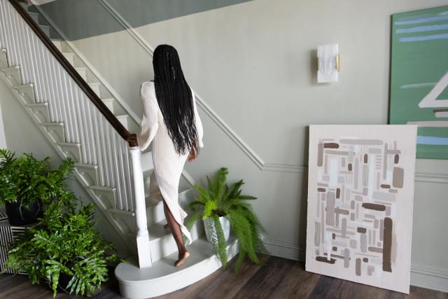 Since launching her home design studio Ọlọrọ Interiors in 2016, clients have sought out Chanae Richards for her ability to deftly enhance soothing, minimalist environments with artful and cozy touches. No two spaces look alike, and yet every result feels distinctly like a home: inviting, lived-in, and comfortable. But thanks to projects within her own residence, a two story townhouse in Philadelphia’s Germantown neighborhood, the designer has added two more titles to her resume; painter and plant lady.