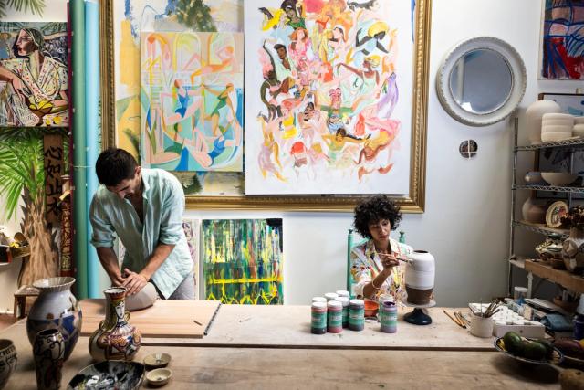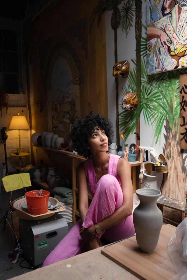 One time I returned from a trip to Sri Lanka and came home to tonnes of pots sprawled around the apartment. I was mind blown! Naturally, I was excited to paint on them. It was fun for me to work on a three-dimensional surface but also to explore various styles outside of my traditional aesthetic. Over time, we bought a kiln and now have a few pop-ups under our belt. Soon we'll be gearing up for our online store and stocking in various stores.