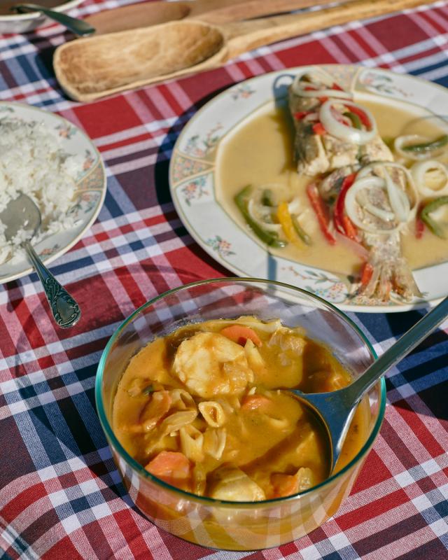 I often got recruited to help. I was the worse at peeling root vegetables because every attempt eventually turned into one of these women taking over. I'd do more simple things like rinsing the rice, soaking beans, and occasionally getting some time in front of a big pot whipping cake batter from scratch with these large hand-carved wooden spoons from Haiti. But honestly, I had way more pleasure watching them. Just being in the kitchen was not only a sneaky snack but a way to bond, talk and joke around. I always remember it being comforting and safe.
