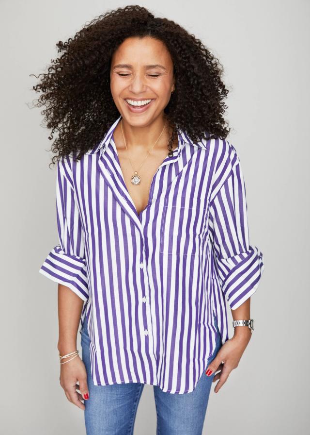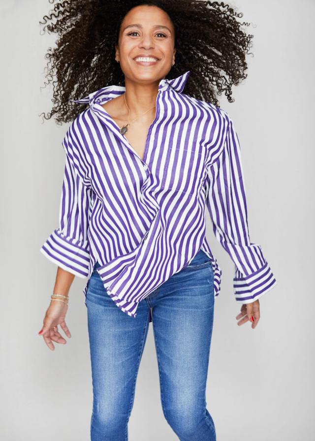 Marilee wears Jeans from Moussy vintage. Striped shirt from The Frankie Shop.