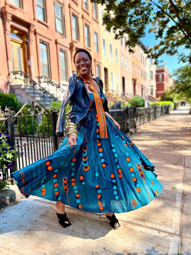 Roberts, a former model and entrepreneur, has turned her passion for acquiring vintage into a career. She’s the founder of The Collective at Indigo Style, a community-minded store in Bedford–Stuyvesant full of the kind of treasures Roberts herself wears in addition to a highly edited selection of local brands, showcasing makers of color. Roberts was drawn to vintage from a young age. The magic, she suggests, lies in its sense of discovery and individuality.