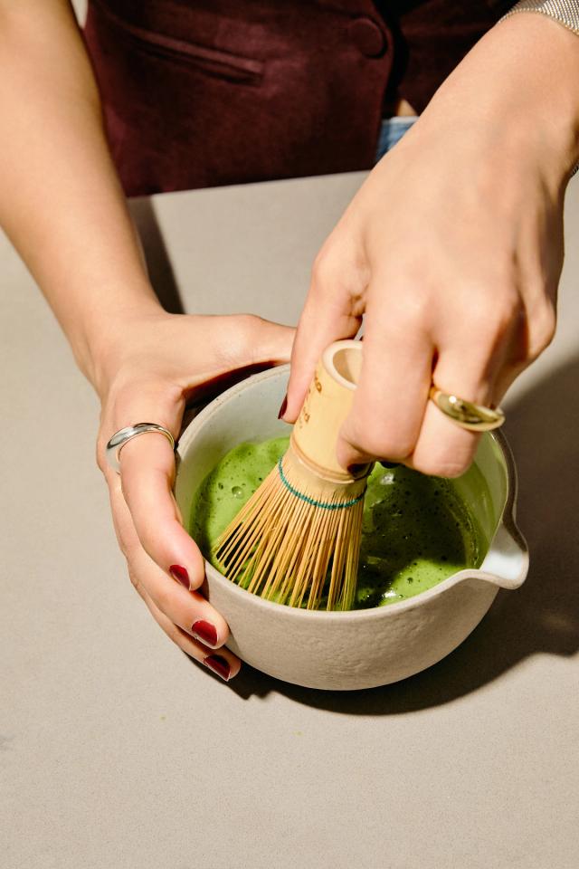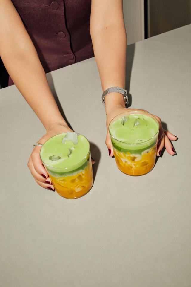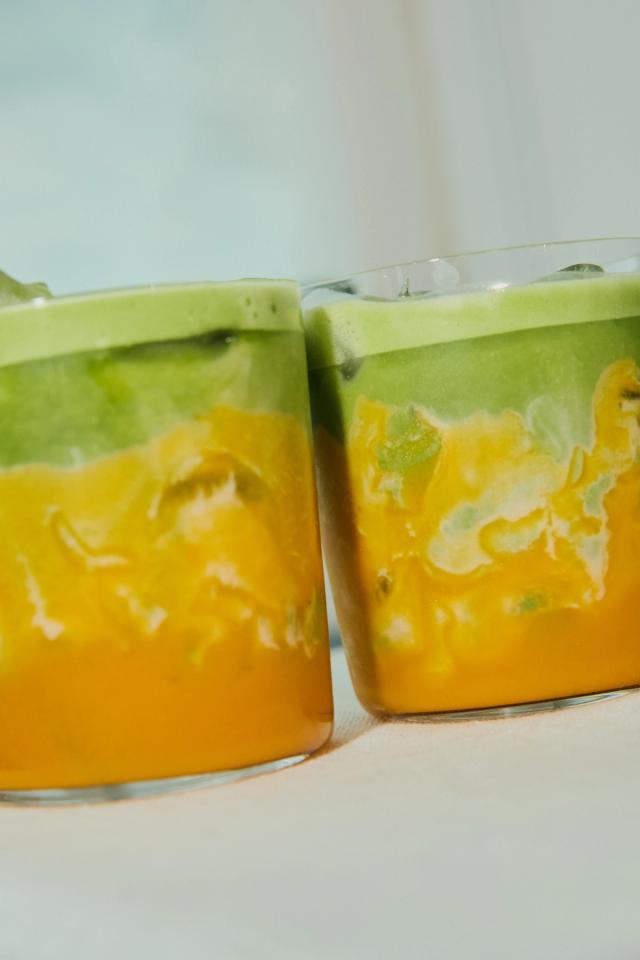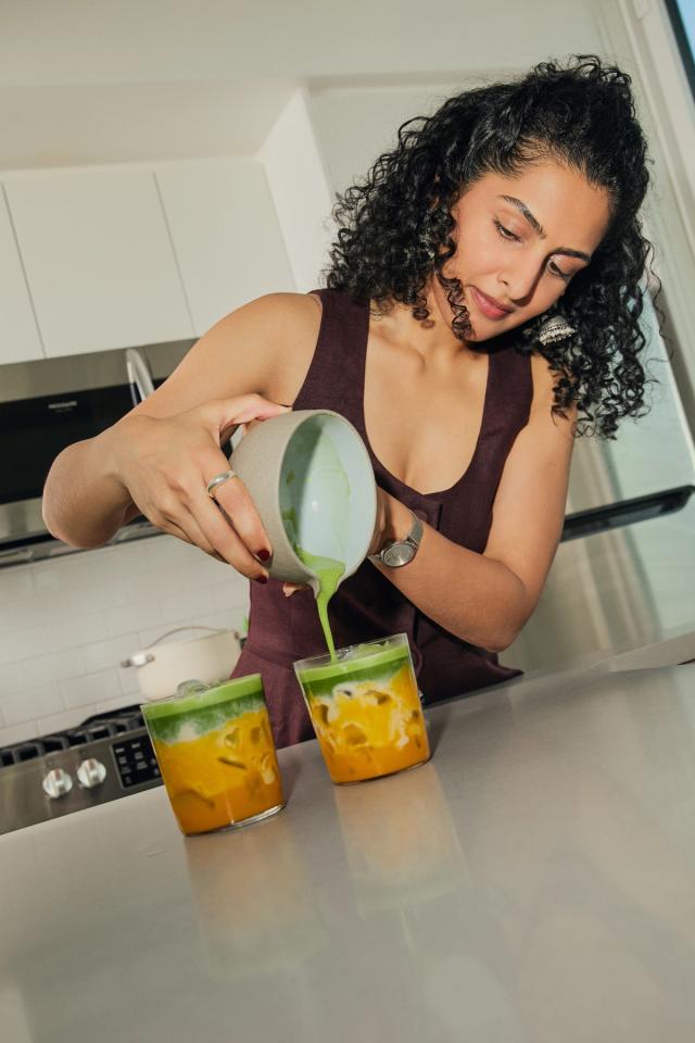 For Margot, she made us a taste of what we might try at a Bazaar dinner party. Starting with Japanese matcha and pureed mangoes made from fruit imported by the Indian store, topped off with pistachio milk for a final layer of green vibrance.