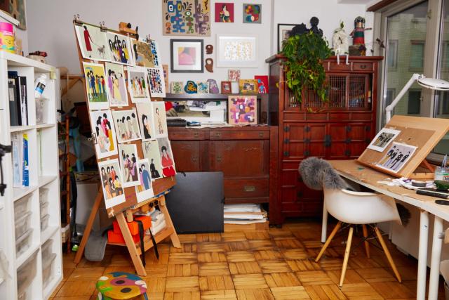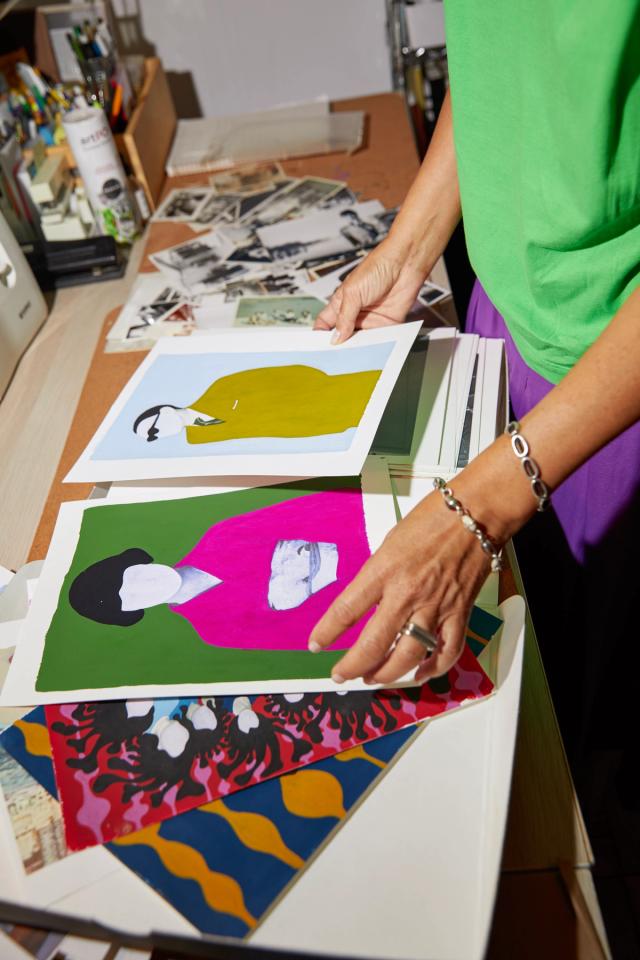 However, I never identified as an "artist" till I was in my 50s after my divorce. My father, who meant well, always told me a real artist could draw hands and feet, and I could not. So just being creative didn't mean I was an artist. I did not go to art school either. I even became a jewelry designer in my 40s, and it wasn't until I turned 50, when I started using a more traditional form of art, such as painting and collaging, that I began to say I was an artist. It was an outlet to process a very challenging time. Even now, if I do figurative paintings or drawings, the hands are in pockets or have no feet. I still suffer from some imposter syndrome because I came to it late.