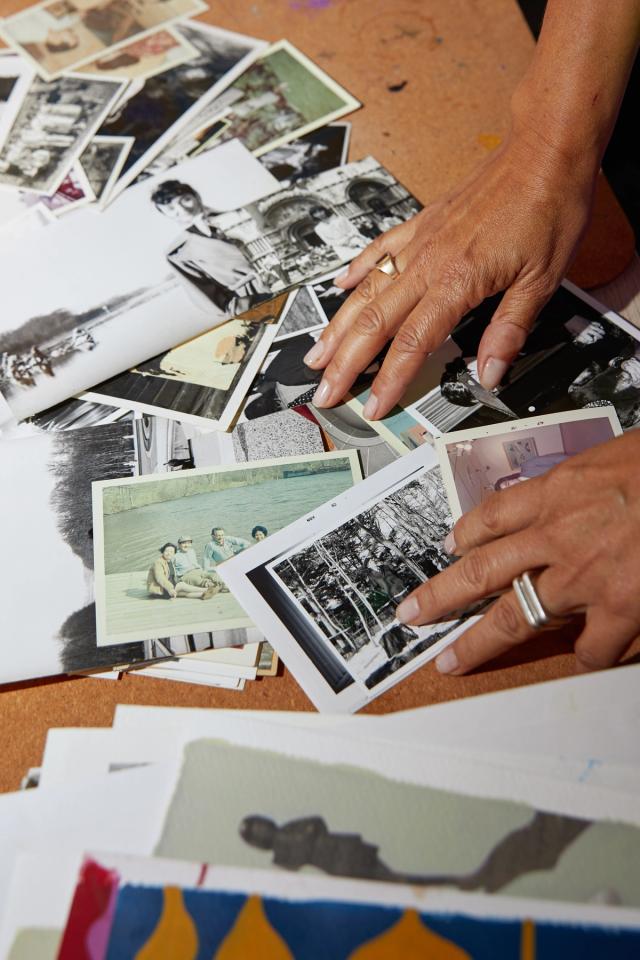 My process is dependent on the type of artwork I am creating. I initially began with mixed media and collage because I love to play with texture. I have also explored different types of textiles and made rugs from my designs. More recently, I have been working with a combination of photography and painting on paper.