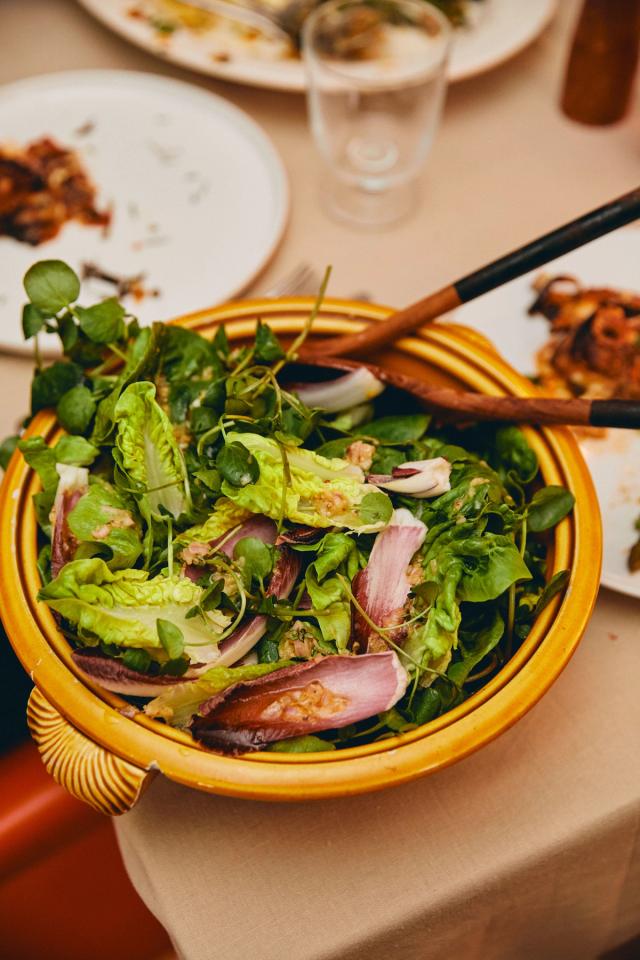 For the Margot dinner, held in her airy parlor floor eat-in kitchen, Gillon created a vegetarian feast, which highlighted locally sourced ingredients. “Growing up, we didn’t really eat a lot of what’s considered traditional English food,” she explains. “My parents traveled a lot - my father was a journalist working a lot in the Middle East and my mum used to travel with him - and they both absorbed a lot of the food culture. As a kid, we were more likely to be passing plates of hummus or baba ganoush around the table than sitting down to Roast Beef with Yorkshire Pudding.”