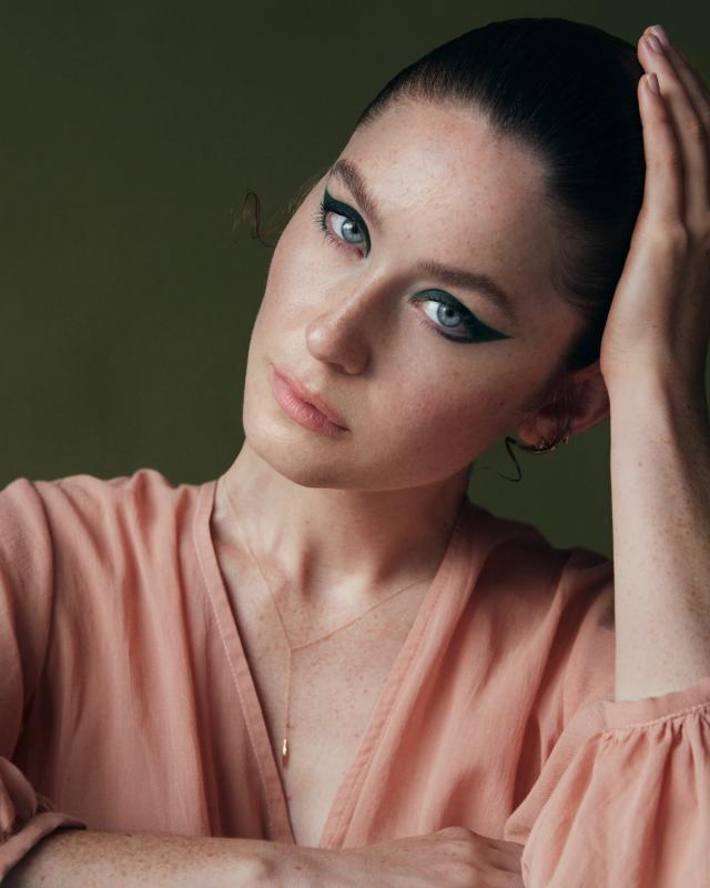 Madeleine has been into sustainable and cruelty-free beauty since her college days. “When I started getting into makeup, I would paint this elaborate theatrical makeup. It was about being artistic. Now I wear minimal makeup day to day,” she says. Nevertheless, the environmental advocate, who often dresses minimal chic, believes everyone can benefit from a pop of color like the perfectly hued cateye created for the shoot. Madeleine recalls a recent event when she needed to inject personality into an all-black outfit. “I applied a dab of aqua-colored eyeshadow to my lids and softly blended them out. It gave me the vibrance I needed.”