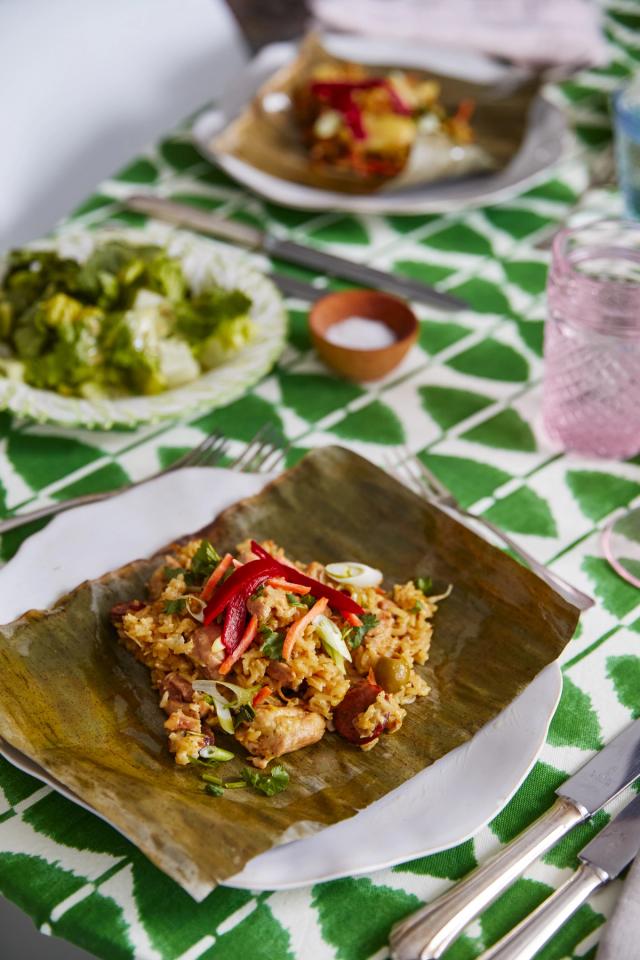 With a philosophy that food should always “awaken the senses,” Landicho Baechle chose a beloved dish that offers serious wow factor. “Bringhe is a Filipino-style paella with coconut milk, broth, and banana leaves,” Charmaine explains. “Its beauty is that it's a one-pot dish served straight from the skillet - you will wow your guests when you remove the banana leaves. They will delight in its colorful ingredients, fragrant smells and earthy flavor.”