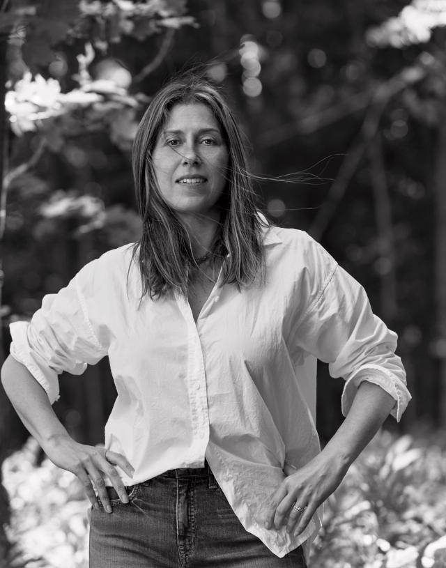 Soraya wears an oversized white shirt by JCrew and jeans by Nili Lotan.