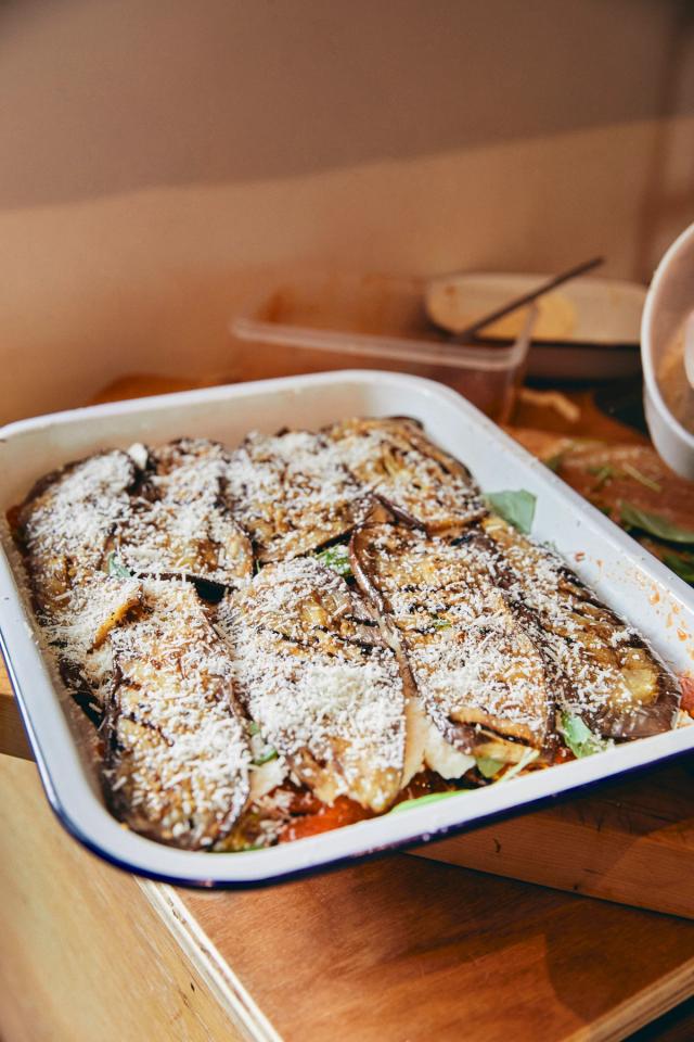 A classic crowd-pleaser, this recipe using grilled aubergines is lighter than the traditional version. Light or not, there’s no getting away from the fact that it is labor-intensive, but all the work can be done in advance, making it perfect for stress-free entertaining. Once cooked parmigiana is very easy-going, happy to wait around until you’re ready to eat. In fact, it should be allowed to settle for at least an hour after taking out of the oven – like all of us, it’s much improved after a rest.